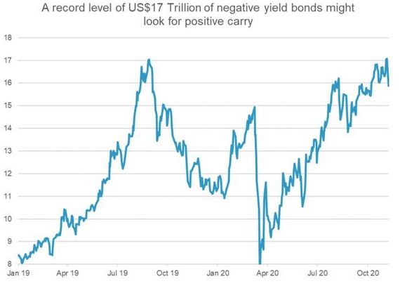 Importantly too, should the vaccine inoculate inflation and boost growth, we should start to see a rotation of investments out of these bonds (which are a cost to hold) and into equities that are reasonably valued and broadly recapitalised.